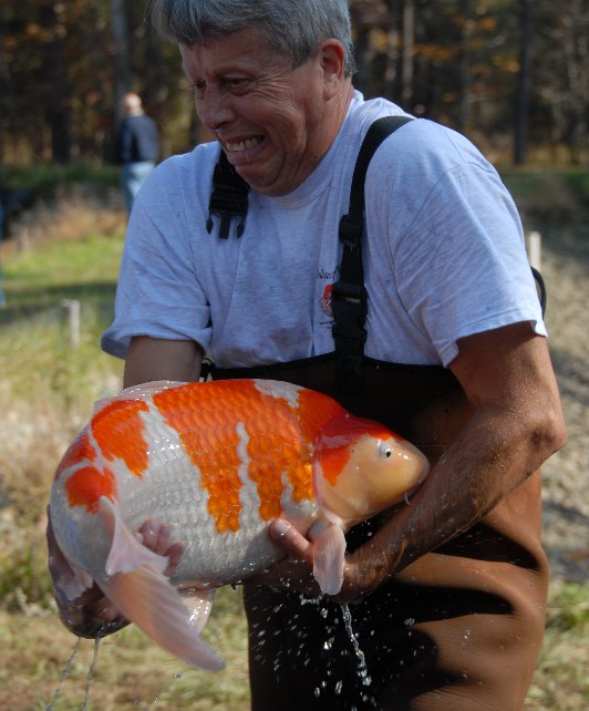 After the koi were pulled from the pond they were moved to