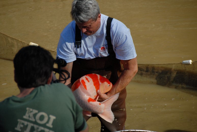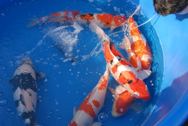 Here is a shot of one of the tanks. 20-30 koi were pulled